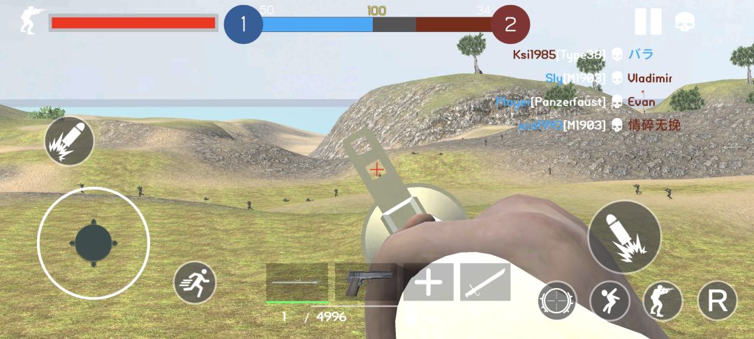 1.游戏是占点游戏,刚开始出生点只有一个,随着你占据了旗帜出生点可以前移, 2.开局不知道怎么走,可以跟着队友走,在开始界面可以调整双方的兵力和获胜。建议选择多点双方兵力这样敌人部队会比较明显 3.击败一个敌人或者队友之后,右上角就会显示击杀消息 ,有友伤注意不要被坦克压到,不过自己开坦克的时候,貌似压不了人 4.开局建议选择看广告解锁一个远程武器狙击枪或者榴弹炮避免还没看到避免还没看到人就被打死