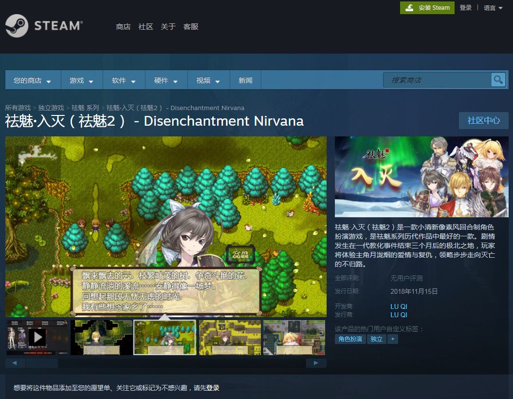 祛魅·入灭(祛魅2)Steam版本于2018年11月15日正式发布。 首周优惠史低价-25%! 内容包括全剧情、角色新立绘解锁。 请大家奔走相告吧! https://store.steampowered.com/app/972200