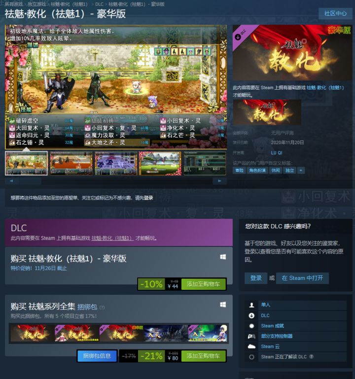 【万圣节特卖】Steam电脑版可以白嫖补正啦!史低价,祛魅1+2合集(含2套游戏本体与2套高清清凉画集)仅售21元。活动截至11月3日,错过了要等整整一年哈!入正点击 https://store.steampowered.com/bundle/9136/_/