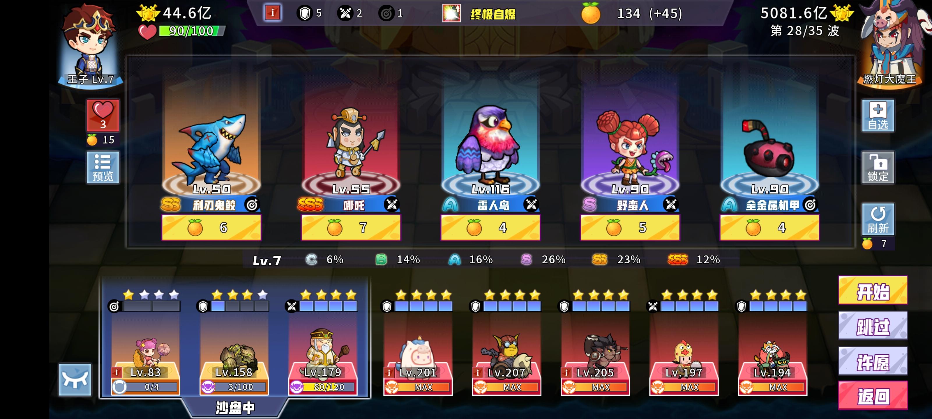 四五天时间推到76,除了契约和30块礼包基本没怎么花钱。阵容就是送的小鹿,蓝猫,锤子,地龙,哪吒,提一嘴,送的这个哪吒开荒感觉还挺好用,面板高跳boss房间就是快,遇到死神这样出生再换锤子就行了。我当然也知道坤哥厉害,知道攻略要每天去合战斗鸡。但玩这种单机游戏,最要紧的不就是开心么,就当开心消消乐玩呗。说不定过几天腻了就弃游了呢。那几个新英雄,画得是又丑又粗糙,竞技场随机到几次,辣眼睛。老