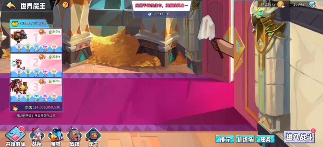 个人总结。反正呢 101之前我是很推荐大力神的。一路炸过来的!! 102以后停了挺久吧 反正就是伙伴装堆射手强度 。天赋后面我都选的射手暴击。没研究到底啥好。纯暴力美学!!精英的话91还是90了 感觉精英太多辣鸡时间了 基本都是自动打的 失败了就去整个橙鸡继续。。。有一点 为啥没人去提 精英关一次性的物品可以用体力补领??我感觉我自动丢了好多白绿卡
