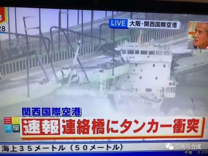 此后,日本关西机场附近,一艘油轮由于台风,撞上了机场连通外界唯一的桥梁,自9月4日下午3时起机场关闭,成为孤岛。