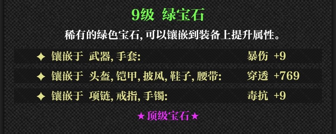 新手攻略宝石: 宝石作为贯穿游戏最重要的战力来源,选好宝石很关键。 红色放武器加攻击,放防具加护甲,放饰品加火炕。 黄色放武器加回怒,放防具加恢复。放饰品加电抗。 蓝色放武器加攻速,放防具加生命。放饰品加闪避。 绿色放武器加爆伤,放防具加穿透,放饰品加毒抗。 所以在开服前三天,大家宝石能买红黄宝石就多买,推图快,升级就快,而蓝绿宝石的属性大多偏向于后期,比如玩闪避流、暴击流等等,红黄宝石基本可以说
