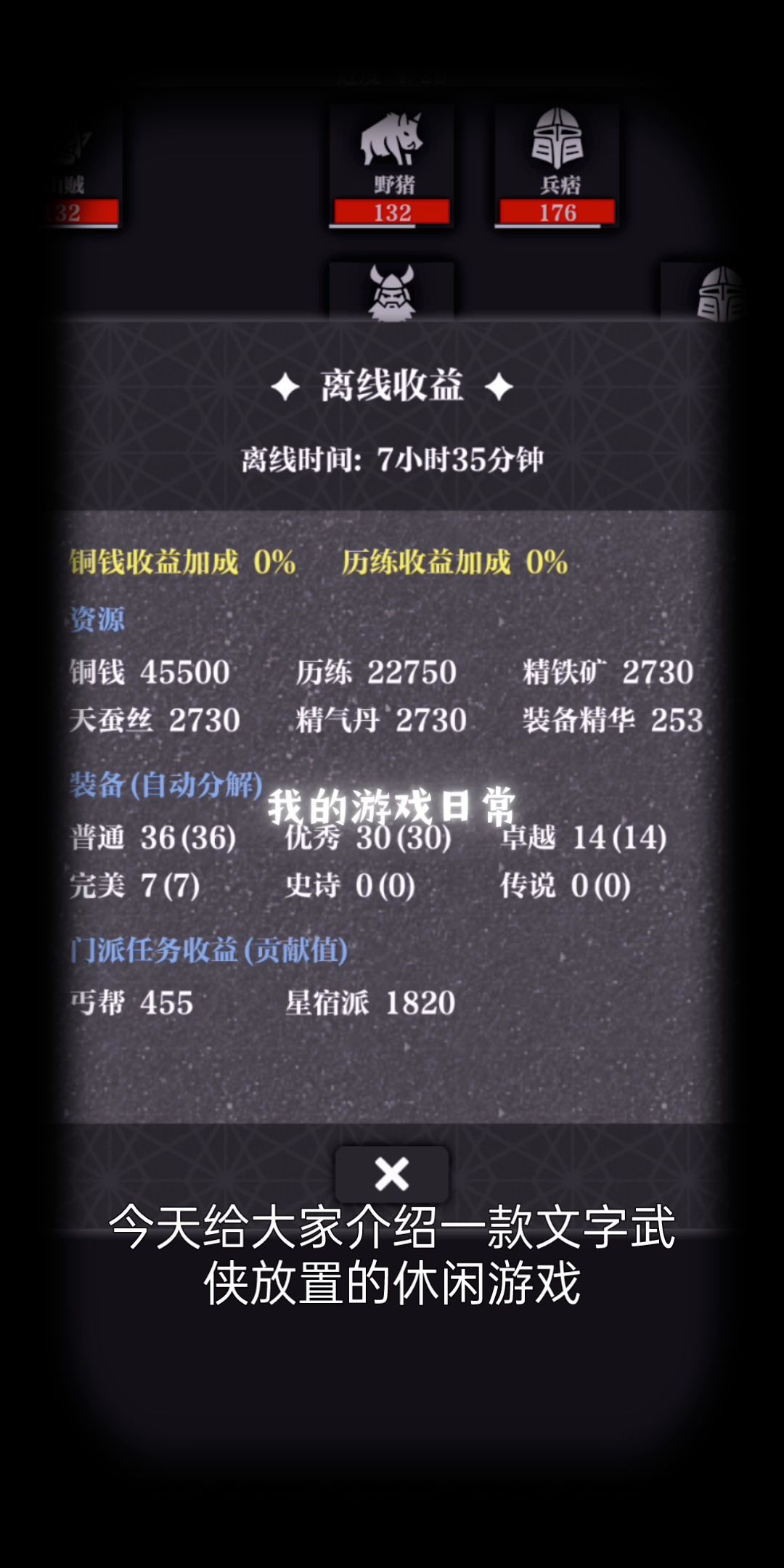 游戏简洁尔不失经典!!轻松放置,一键升级。各种武学秘籍等待你来学习!#我的游戏日记Vol.5#游戏安利#游戏推荐#放置游戏#武侠#文字游戏