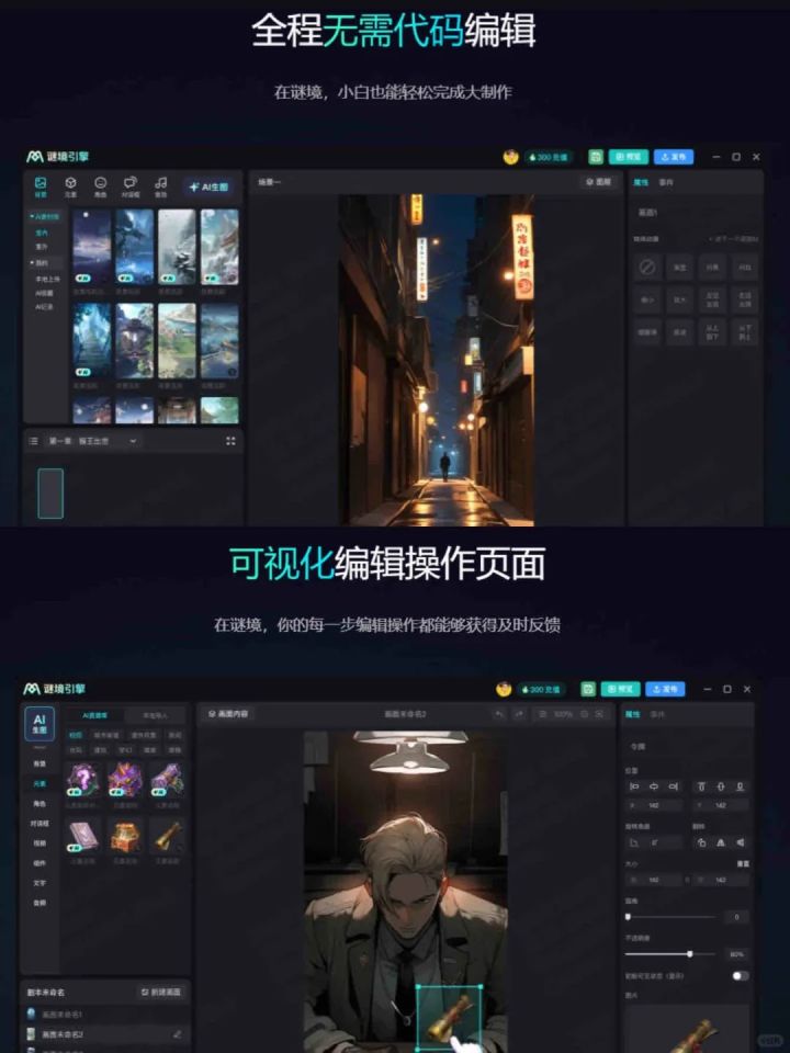 谜境引擎是一款无代码创作的AI编辑器!创作者只需一篇小说/一个故事,即可无需代码,自己创作互动剧情,或者用AI即可一键生成剧本!谜境引擎支持AI生图,每天免费大量生图200张!目前谜境引擎在官网已上线,欢迎创作者大大/感兴趣的小伙伴们加入创作者裙前来体验,入口评论dd~#ai #ai创作 #无代码 #互动游戏 #谜境 #网络小说