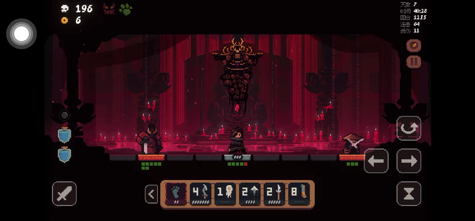 拿苦无 前期拿了个 连续击败敌人加金币 升级上限 升级伤害 添加连击 升级伤害 连击商店:连击后刷新技能 连击后敌人随机诅咒