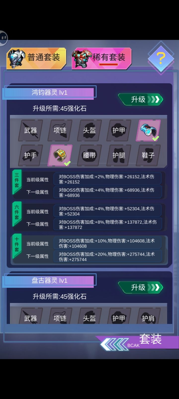 280级了,来说说,就是挂机养老,目前750万物攻法攻,1.1亿生命值,6技能全满,360万物法防,每天挂机+扫荡,➕商店,+神灵塔能量有5万左右,套装普通套全开,稀有套我是一套先开6件4套开满差不多用了310万能量,然后我打算一套先开两件四套开满,在开一件4套开满,最后的一件用碎片百分之百去开,这样的概率能量消耗最少守护神除了ssr的百分比加成,其他的没啥用,很难抽,我花了60万才抽了不到