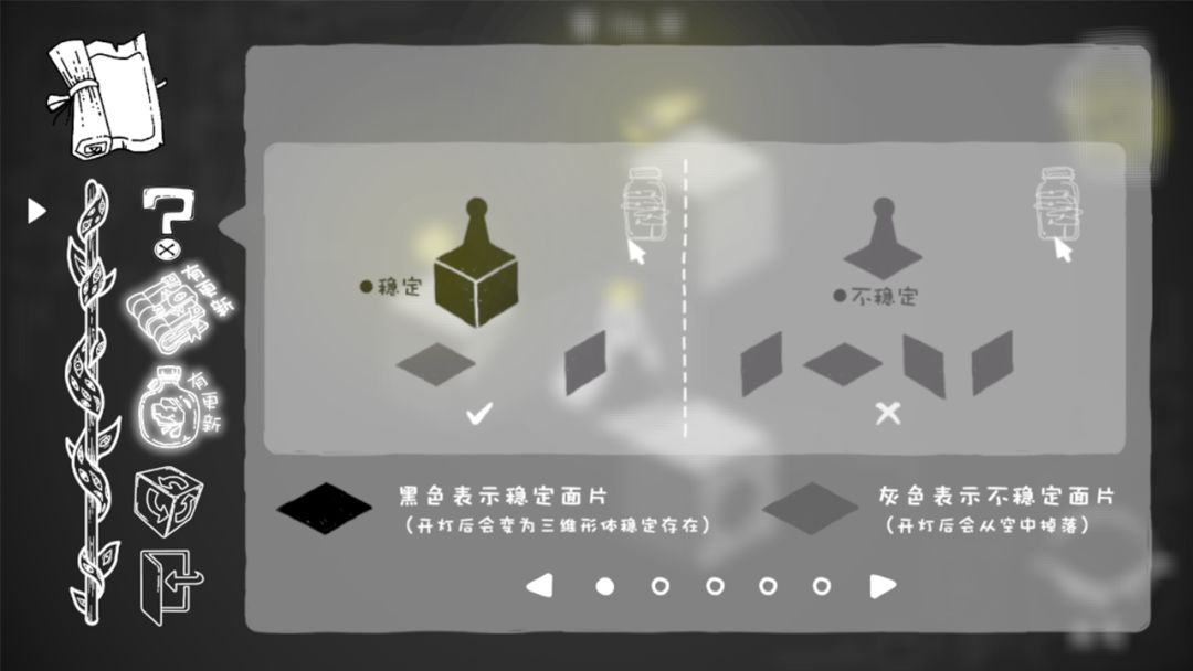 一款空间解谜游戏,探索二维与三维的交错点,慢慢了解迷失在空间中的故事。一切三维物体之所以我们看起来有立体感,那是由于透视/光影/明暗等元素辅助认知产生的,如果抛去这些因素,那么我们视网膜上呈现其实是二维的图案而已,五维空间游戏的核心就在于,玩家可以控制灯光开关,以此进行二维-三维之间的转换来解密。