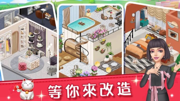 欢迎参加素人大改造!你和你的设计师团队将完成华丽的蜕变,实现无数普通业余爱好者的心愿。在业余改造比赛中获胜后,您的团队将在一个美丽的小镇上获得一栋豪华别墅。建造你的别墅,解锁更多的城镇人物和故事章节。进入游戏,你将在你的新豪宅里开始一段任性的新生活!
