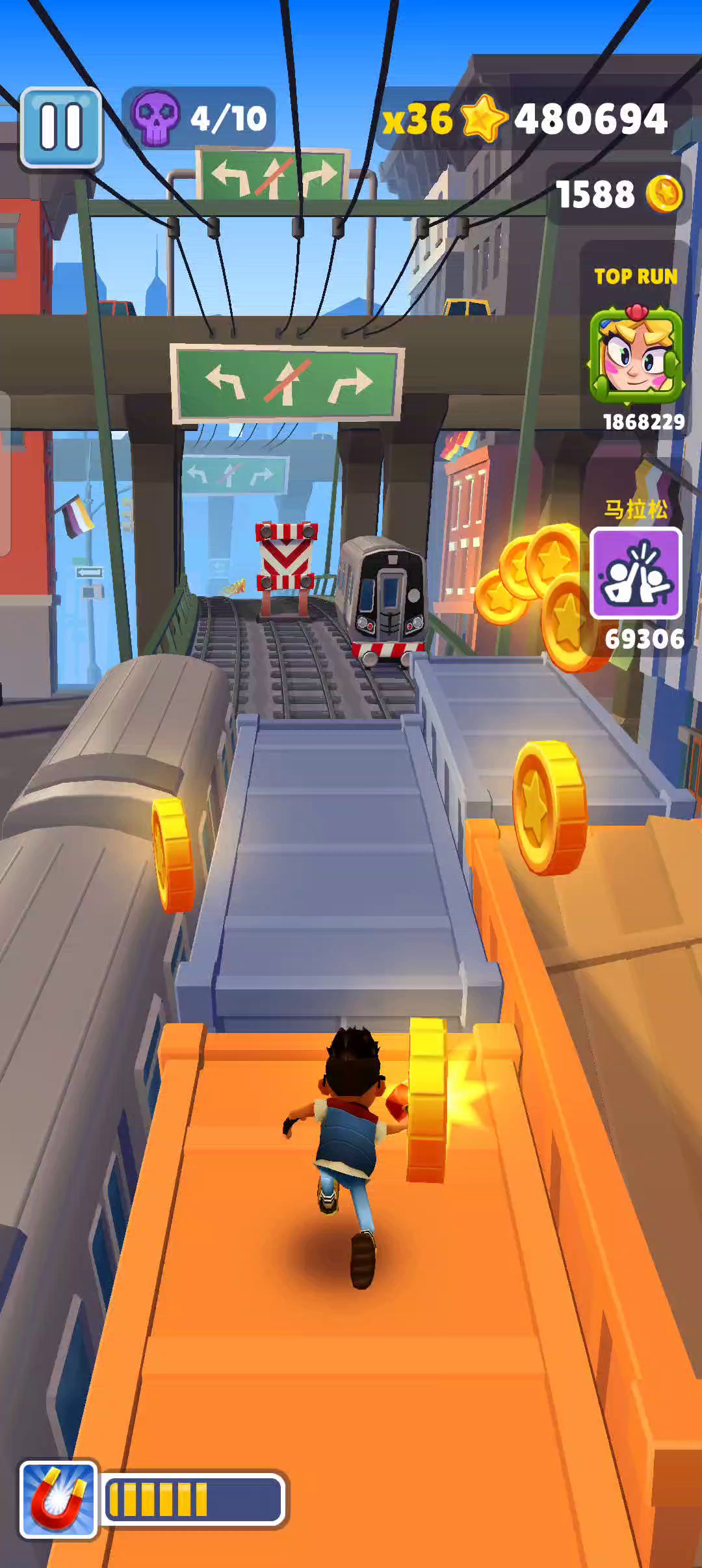 【关于金币】每捡到一个金币加60分,而如果购买双倍得分则一个金币为120分。如果你的对手一个金币120分,而你只能60分,那么差距就会拉开。所以如果想要跑高分,双倍金币是建议解锁的。在不影响操作的情况下,尽可能的去多捡金币,注意细节,走弧形也比走直线能够吃到更多的金币。在有些王者局里,你和对手的差距往往就是几个金币的分,注重细节,得分也就会更高。