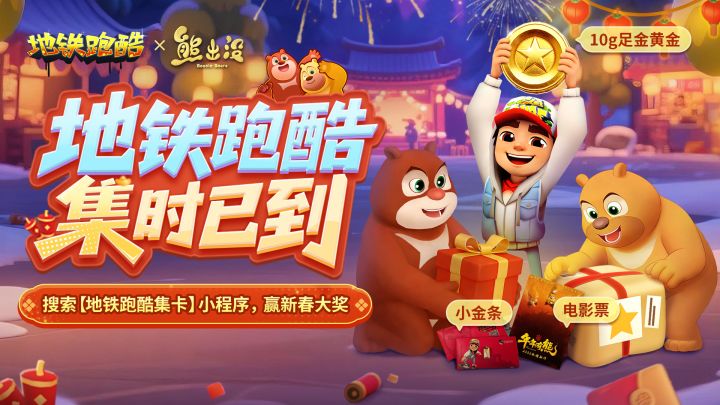 《地铁跑酷》x《熊出没》新春联动震撼来袭! 狗熊岭春节庙会地图全新上线,年味拉满! 熊大、熊二、光头强经典角色齐聚地铁跑酷,陪你欢乐开跑~ 2月5日15:00,沉浸式逛庙会迎新年,新春跑酷嗨不停!