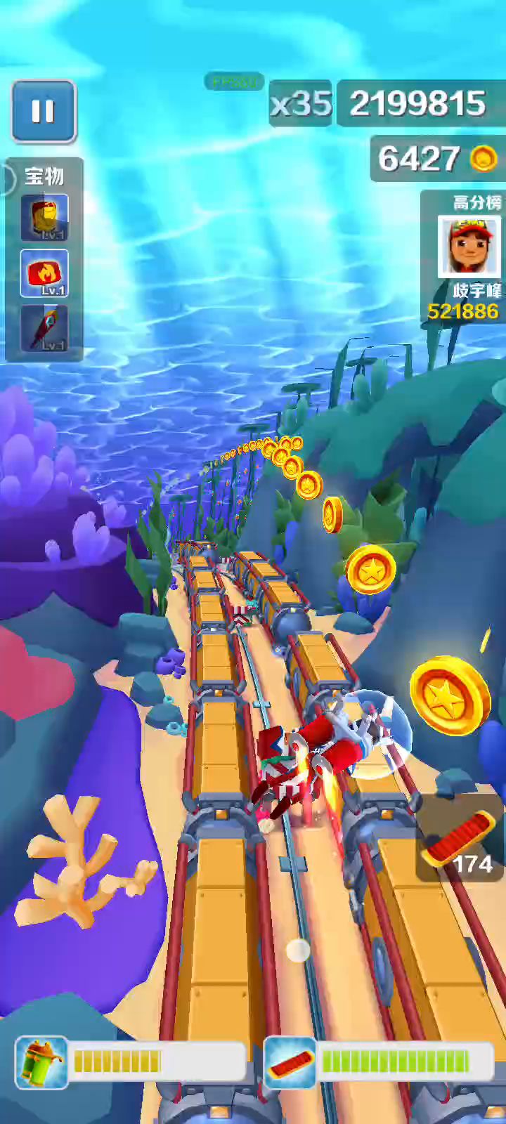 分享一下心得,能量满了直接开滑板,如果不开的话,剩下的能量就会浪费,尽量不要碰到障碍,如果熟能生巧的话,你就知道下一波的能量在哪儿。