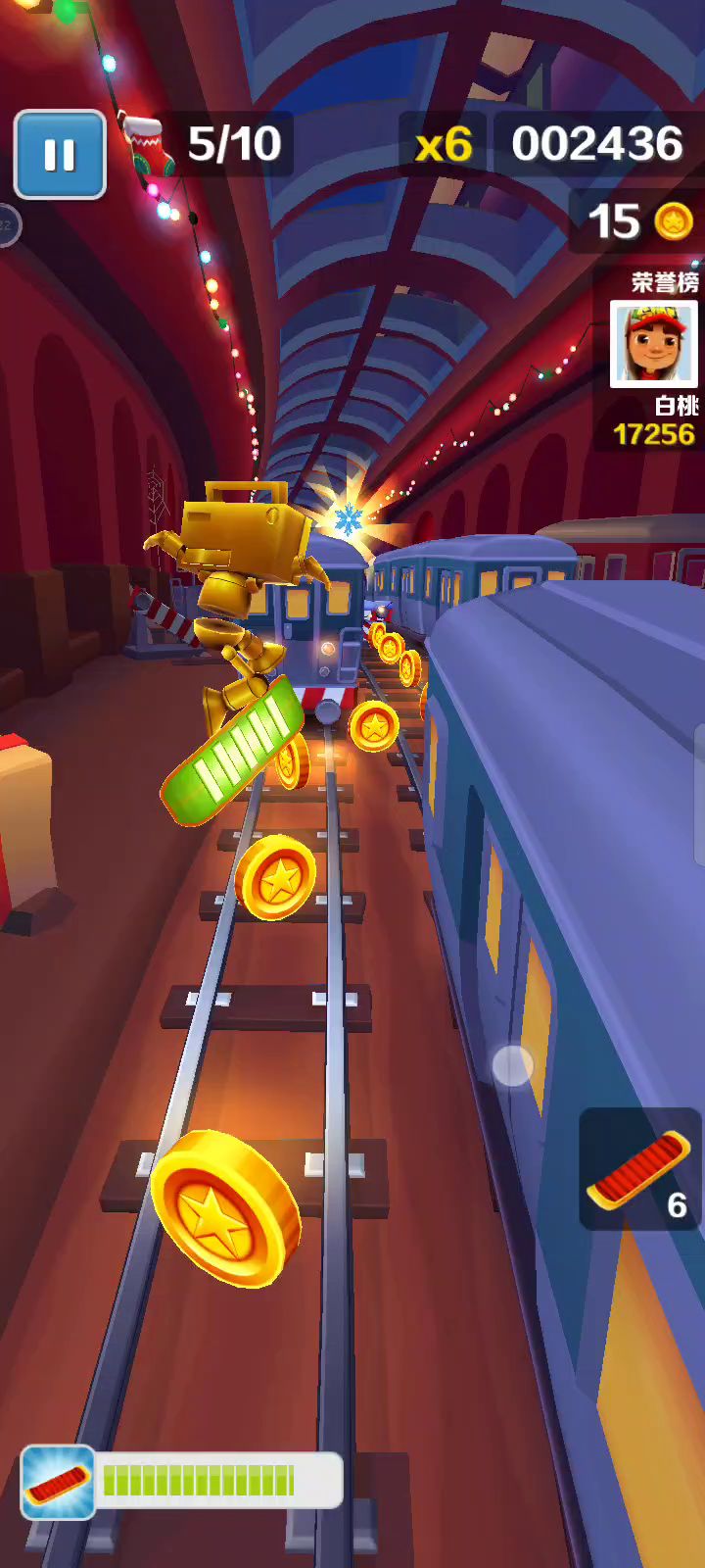 快速左右到金币后面然后回来的时候跳,再左右踩一下第一节车厢的角落,再侧跳就行了