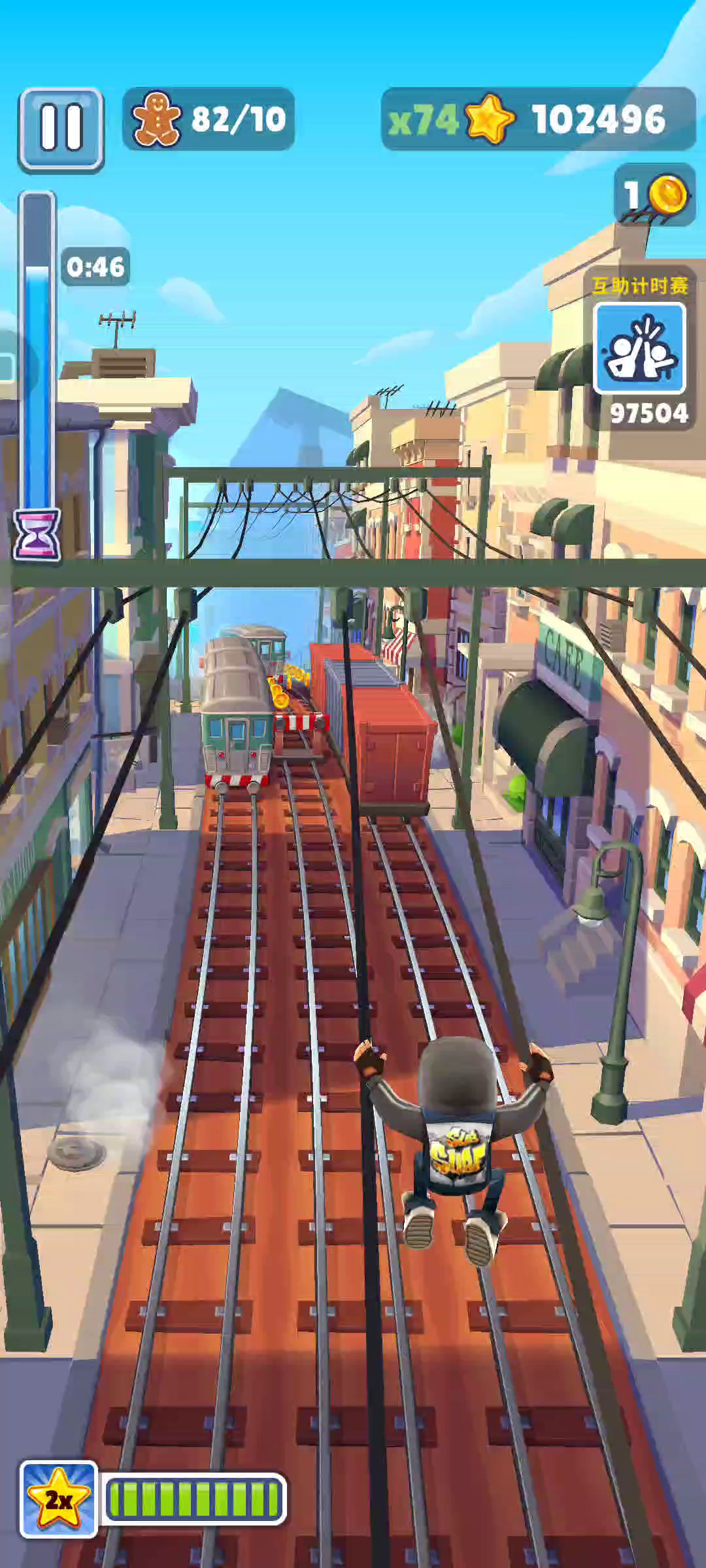 有一段时间没玩兔子套了,都有点生疏了 定个小目标上:跑酷王者