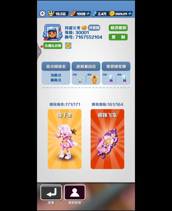哇,第一次玩就有喵千金,哇,第一次玩就有背部装饰,哇,度一次玩就有滑板的皮肤,哇,第一次玩直接X52,哇,第一次玩身法飘飘,哇,第一次玩4位数滑板,哇,你要是新手我就注销我账号