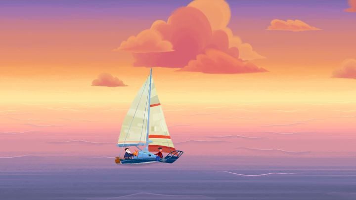 最后,老人扬起帆,迎着初升的一缕阳,吹来的一缕风,远行,脸上还存在一抹恬淡的微笑,去美丽的地方。