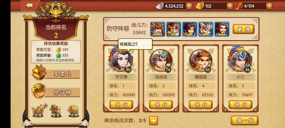 兄弟们,这是第二期。 这一期更偏向于总结前排武将,我所定义的前排武将是指站位在前面两个的武将,他们会首当其冲赵云的二技能,可得出以下结论。 本套阵容的主要核心输出是赵云的二技能配上了张春华的大招给buff,一击之下大概率能使前排武将被冲死,就算没有死,还有提供了反弹盾的周瑜,能保证赵云接下来不被控住,有足够的时间对前排武将进行输出,而不至于被控住,然后一个二技能把后排突死。 从综上所述,这一关可能