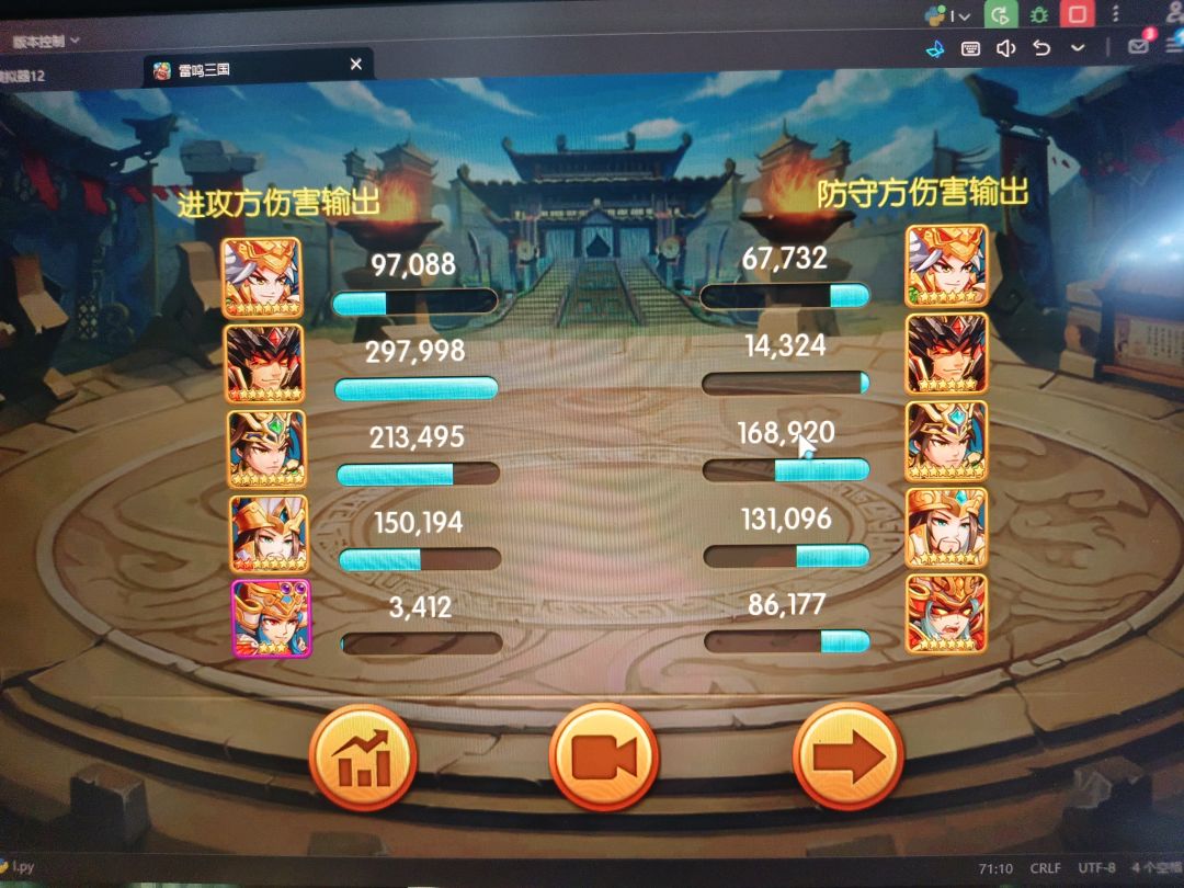 这一期相较于前面几期反倒是没有什么难点,敌方阵容该硬的够硬,该杀的主将夏侯渊也老老实实的待在后方,坐等吃神诸葛亮的二技能加春华的强化,魔周瑜的反弹盾也不在赘述,总而言之,提供良好的输出环境,防止误伤其他武将。 不过这一期可是青冥冠的刷法,就算我知道如何刷这个碎片一样是被200多个刷蒙了。