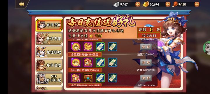 主要针对微氪玩家和土豪玩家微氪玩家:开服七天每天冲30把神赵云拿下顺便拿下V6,第一天先买基金,后面可以买几次月卡很值(可以续天数每天领120买的当时还可以领300),然后礼包买六块钱的然后其余的就看着搞。土豪玩家:建议第一天就搞648(不要买现金礼包直接充先领了优惠券再充值可以少很多💰)搞个神将箱子选神诸葛,(神诸葛要趁早养) ,后面就每天充30拿下第七天的神赵云(期间你们可