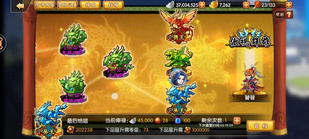 神赵云,神诸葛就不说了,大家公认的最强武将。 孙坚,吕蒙,张春华,孙尚香,这几个都可以刷精英副本得到,获取难度不大。 神马超是可以用普通万能将魂养的,也是必须培养的一个。但是武将获取目前只能tap签到和神将招募获得。 每周五的神魔箱子首选魔于吉,魔张郃次之。魔周瑜也必须要养,中后期刷银两必备,风火神将配合公主春华可以打出核武器的伤害。 必须要提醒一点,开局的武将箱子,必须选周瑜,必须选周瑜,必须选周瑜,重要的事说三遍。一旦错过就只能靠充值获取了。 个人建议,开局必须获得孙坚,一队养孙坚,神赵,神诸葛,诸葛亮,张春华,因为资源不够,先集中培养一队,不考虑二队。