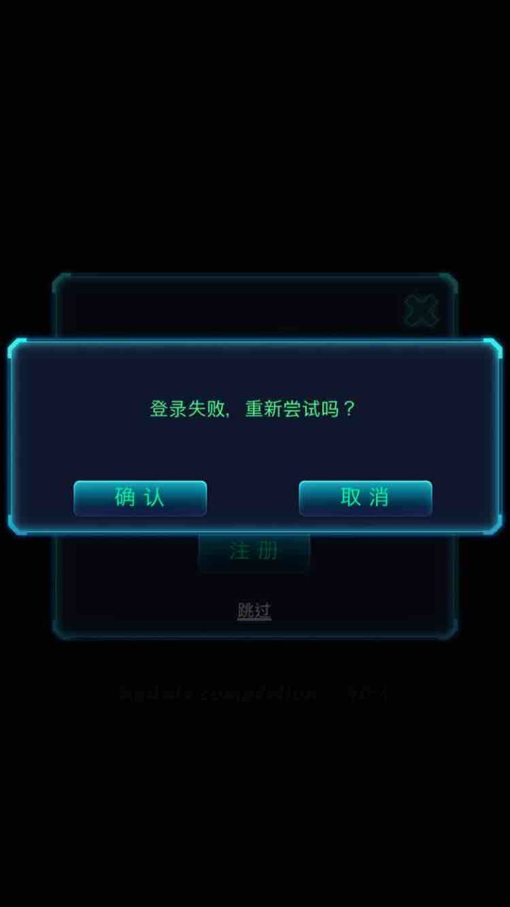 不知道为什么,打开游戏注册注册不了,跳过什么的也没用,统统显示下图的这个。。挺喜欢这个游戏的,玩不了心好累