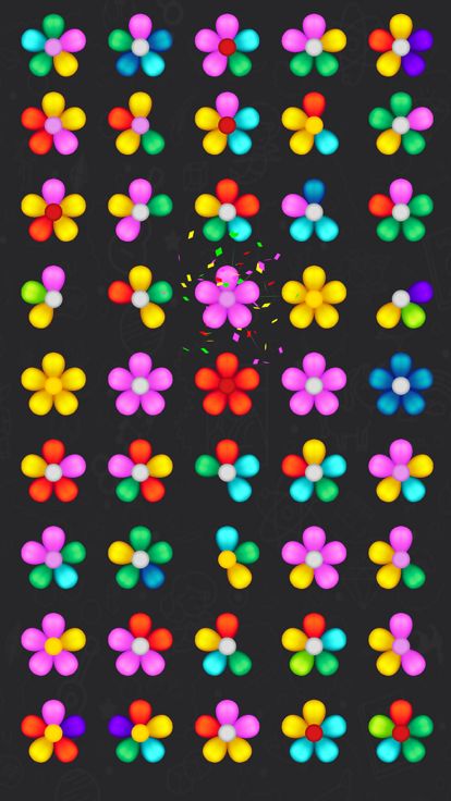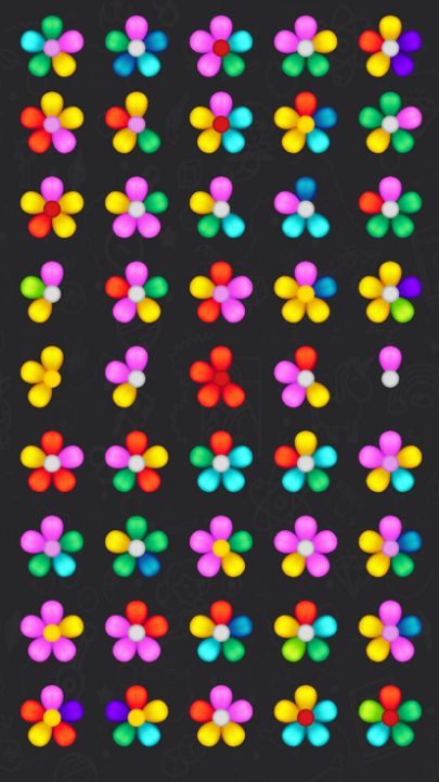Sorting puzzle where you have to sort flowers by colors.
