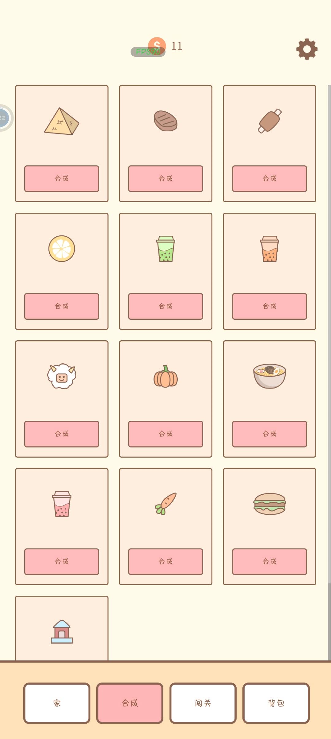 每个东西需要合成的元素普遍2-4种,而每种都差不多平均三个,并且需要一硬作为媒介合成(硬币每次通关给一枚)。