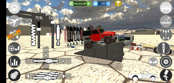 这款游戏估计应该手机上物理引擎做的最棒的汽车越野游戏了。推荐一些喜欢玩汽车越野的小伙伴们尝试一下下面是我个人大爱的牧马人和道奇公羊