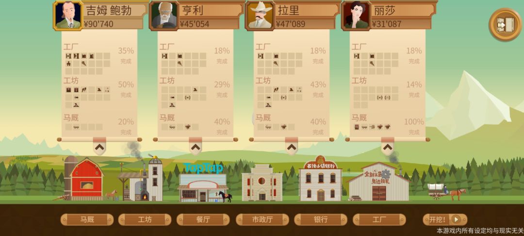 🔅从steam移植过来的挖石油致富经营模拟游戏 ✔️ 开始前先要选择角色(我一直都选择里面的女性:黛茜女士)(另外的三个人就是你的竞争对手啦,要在最短的时间挖掘最多的石油,挣最多的💰❗️) ✔️ 每一局开始前都要先竞价土地,然后在竞价来的土地上探测挖掘石油(运气好的话可能有很多石油,不好的话可能就只有很少一点点🤨) 🌟 人工只能探测出石油的大概位置,只能搭管子试探石油到底在哪了,所以每次管子不能拉
