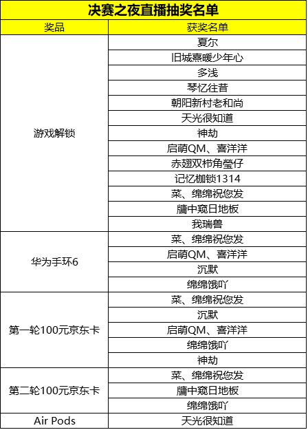 今天的冠军之夜直播活动已结束啦!恭喜以下玩家弹幕抽奖中抽中奖品!请用中奖的账号私聊虎牙主播号(石油大亨手游,ID18712874),留下你的QQ号,方便后续兑奖哦!=============================各位老板好呀!今天!是我们“油王”争霸赛总决赛的日子,万元奖金即将花落谁家?还有超丰厚奖品,苹果Air Pods、华为手环、京东卡、游戏解锁名额等等,今晚19:30虎牙直