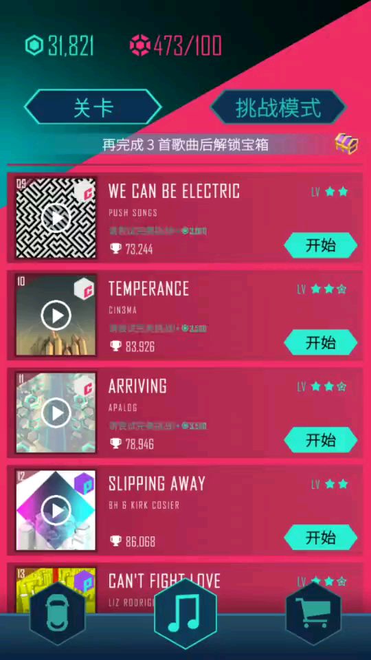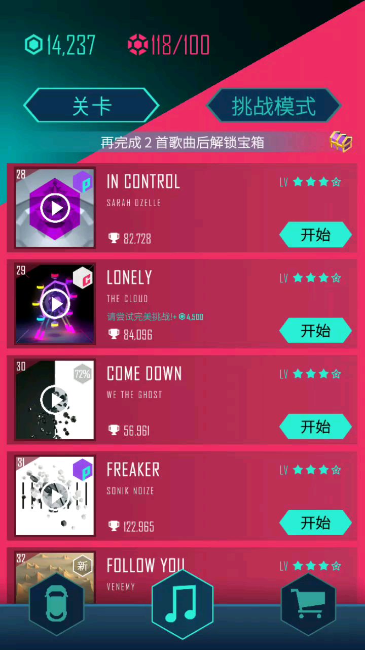 Shake It Up经过三天每日一小时的练习。研究出了“轻按连点”过关玩法(可以设置)。保险起见,此次先用满级Derezzed代替Musiquev.360(已升级至v.360,因此说明了难度为普通。