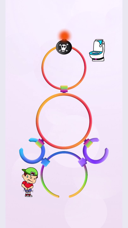 Picture a scenario where the boy is in a hurry to reach the toilet, but his path is obstructed by rings. Your mission is to rotate these rings by tapping the screen, aligning them with the gap, and watching them vanish, opening the boy's way to relie...