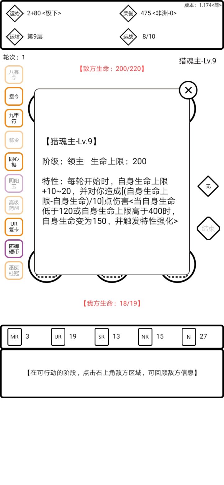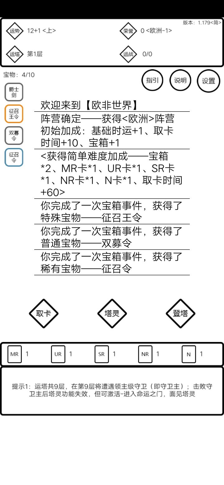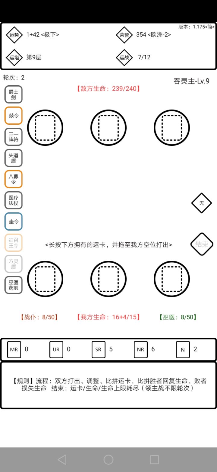 本来我是想做个取卡教程的谁想作者大大已经做了一个取卡解说!解说!解说!所以咱就做了个运战图文讲解贡新人们了解运战(其实就是想要限定宝物/滑稽脸)首先需要了解运塔共9层每层都有一个守卫者每击败一名守卫者就可以往更高的一层前进...废话不多说。看下图 生命这个东西就不用多说了归零即失败。我们直接看我方生命下方的是咱拥有的运卡,上方的是卡位,咱们从左往右称为左位、中位、右位。再看下图 这是守卫者的
