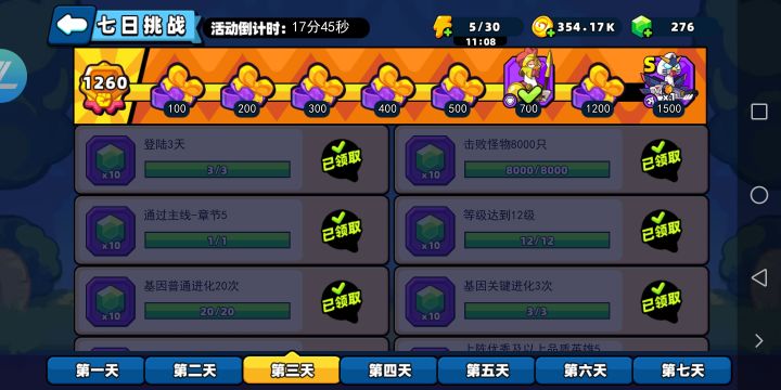 限时突破第一个奖励,兄弟们注意了,这个十个流派徽章是高级扭蛋的200S流的计数,相当于十抽,不是换一个任意S流!我开战令换了秧歌STAR,和原来有的合成了一个传说!结果限时突破后面的还要花钱解锁,而且这个活动只有新号有,所以说除了精氪玩家有钱的之外,几乎无任何性价比!!就此退游了,唉,两个S流派会好打一些,现在打不动了九十八买了个寂寞