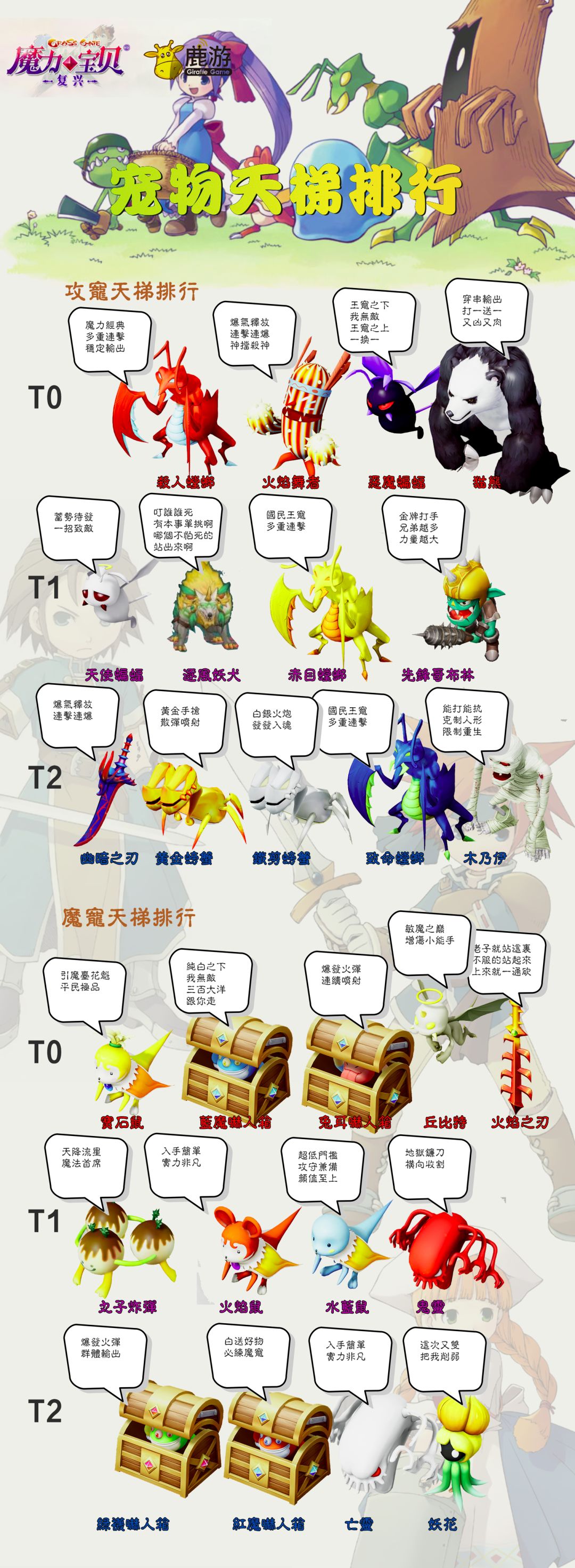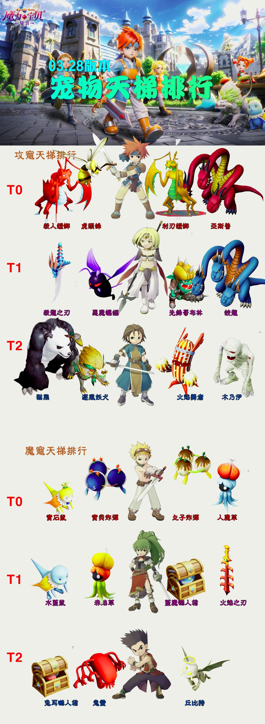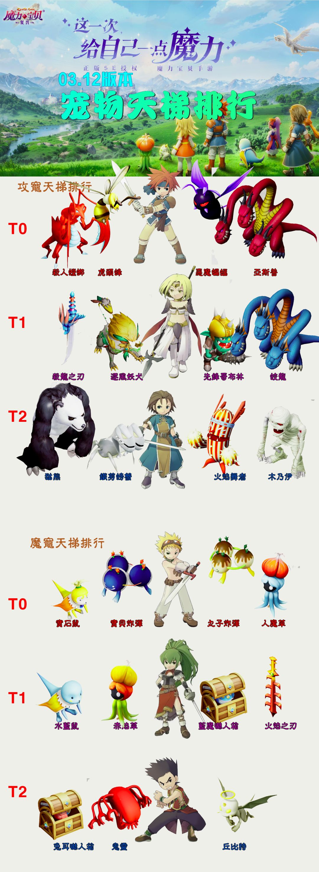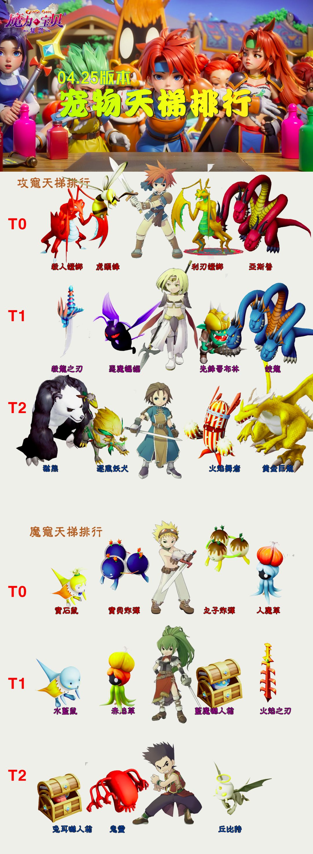目前比较主流的宠物排行,纯系队只适合火风精灵,地水可以配合翼龙混搭。 成长推荐优先金卡宠,改造适合15点减单一属性,比如火焰舞者减魔力,兔耳吓人箱减力量。 感谢阿茶子,墨白,花菲花的技术支持~ #魔力宝贝复兴 #魔力宝贝手游 #回合制游戏 #游戏攻略