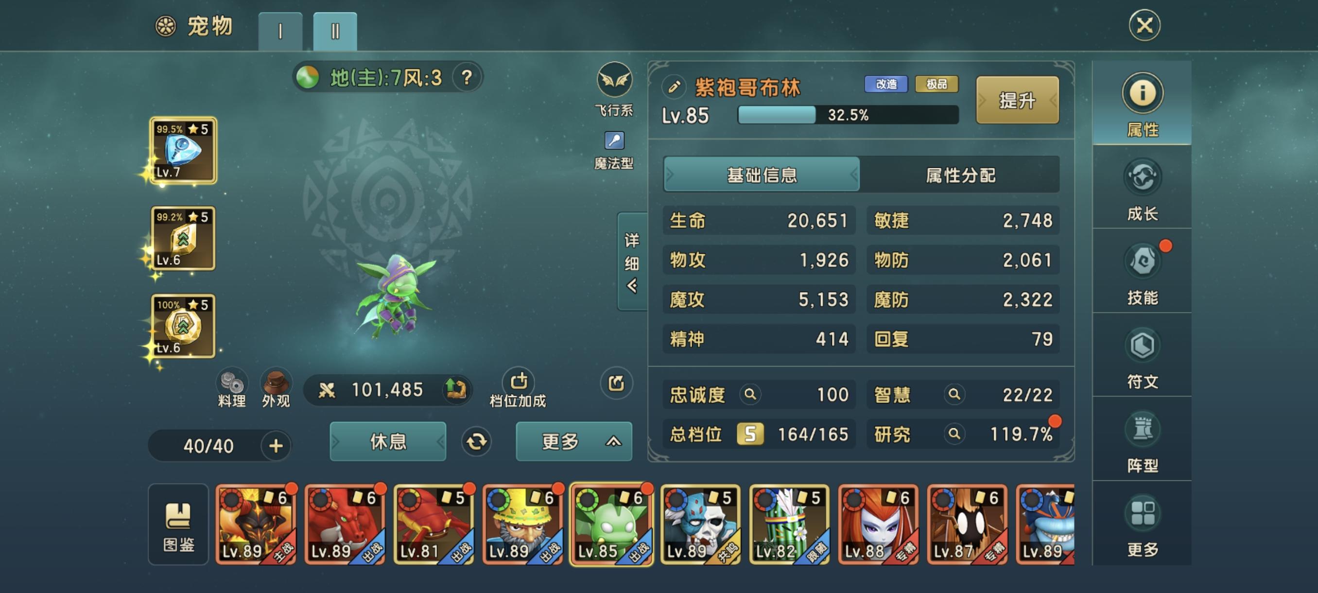 这里更多介绍鸟魔科的实战技术要点: 一、根据自己主力阵容进行选择: 1.如果队里有第一速的控制,或者蜜蜂等,应该选择主火风属性的鸟魔,他大招能激活敏捷最高的单位进行一次普通技能,并增加命中和状态命中; 2.如果队里有暴力伤害,如人物斧子,仙人掌这类,则应选择主地水属性的鸟魔,大招是激活一次物攻/魔攻最高的单位,并提升必杀和魔法必杀。 二、符文选择 1.魔攻法强符文:法连,分裂,专注,法爆,进阶洞察