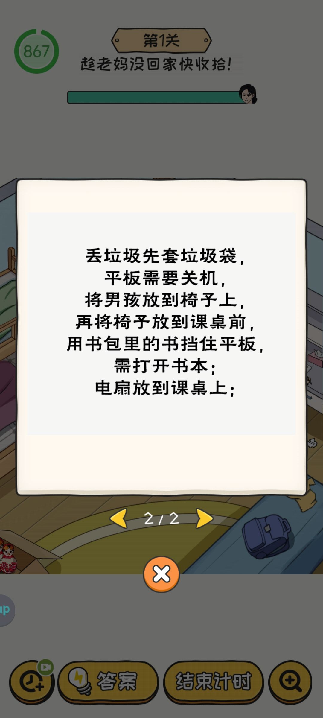 有先后顺序,按人一个一个来,看起来有点乱写下顺序 1.第一个男人只要拉到唱歌男人肚子上即可过关 2.第二个男人是只需用遥控器拖到屏幕上换两次台 3.第三个男人需要先拉开窗帘,再把他拖动到窗户边,再用螺丝刀将风扇外壳取下,拖给他即可过关