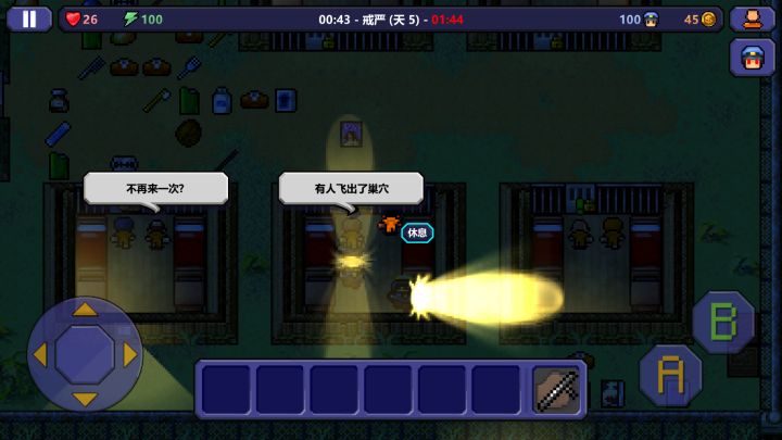 前三关比较简单,有想要攻略的评论必答。过关的方法有好多,我就只提供一种。第四关首先要知道,只出这个大门,是过不了关的。智力,体力加到足够用,我是加到90多的。然后准备,1.红钥匙,2.警察衣服,3.墨水,4.绿色的长的像羽毛一样的东西。这四个是必备。晚点名是打警察,注意打的时机,别让狙击塔打你,或者直接把警察引到屋子里打(狙击打不到)。然后从后门出去,就是这个门然后往上走,