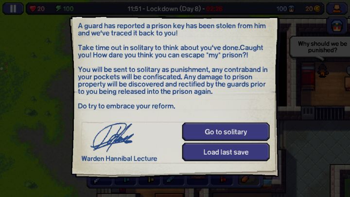 成功用BUG偷走所有警卫的钥匙(没有在熄灯时偷得)