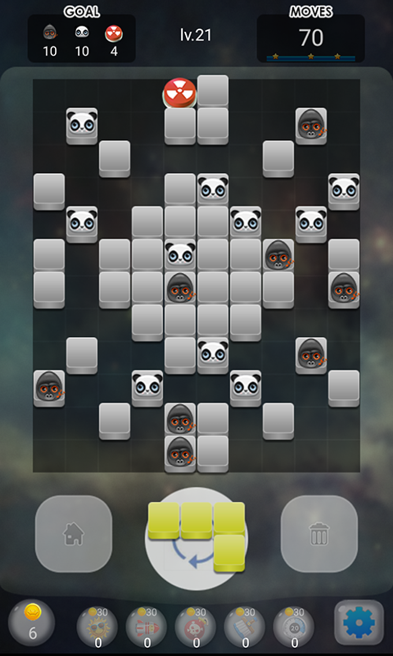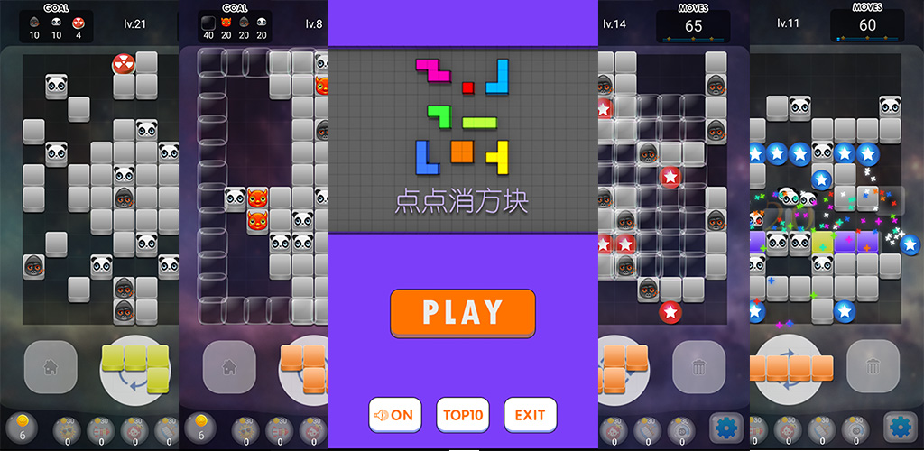 新颖的方块消除,单手可玩,策略多样。全球排行榜,看看你的实力。操作简单、策略丰富。画面精美,道具有趣。旋转摆放、狂暴20秒、道具使用,多样策略过关。精心设计关卡近百个。同时消除三行以上可得到金币,还有金币奖励关。无广告,免费畅玩。