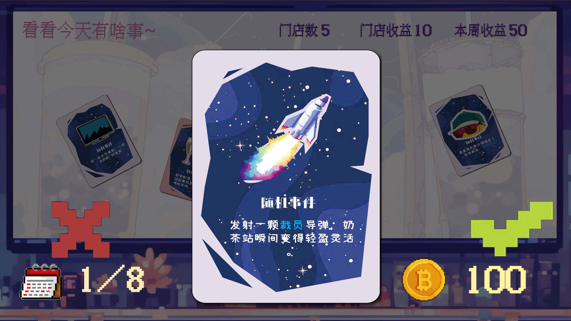 这是一个模拟经营奶茶店的游戏,你作为这家店的老板,需要在多周目的决策经营中,处理奶茶站经营中繁杂的事务,由此把控这家店的命运。 游戏正在开发中,会不断加入新的内容和元素,敬请期待。