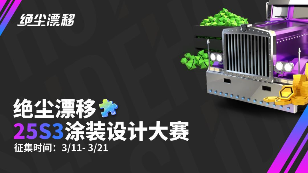 各位漂友,《绝尘漂移》25S7 涂装设计大赛正式启动。 经过5个赛季的涂装比赛,收获超过 500+ 份关于涂装活动的意见,根据各位漂友提供的宝贵建议,涂装大赛规则做出以下调整: 涂装设计大赛中要求 4 辆车的条件修改为根据当前「月度更新车辆池子」首发和返场的3辆车,现在,你可以立刻获取车辆后,参赛做涂装海量钻石奖励、限定车牌和京东卡福利等你来。 调整「设计大赛奖励」,现在起,钻石的奖励再次提升,总