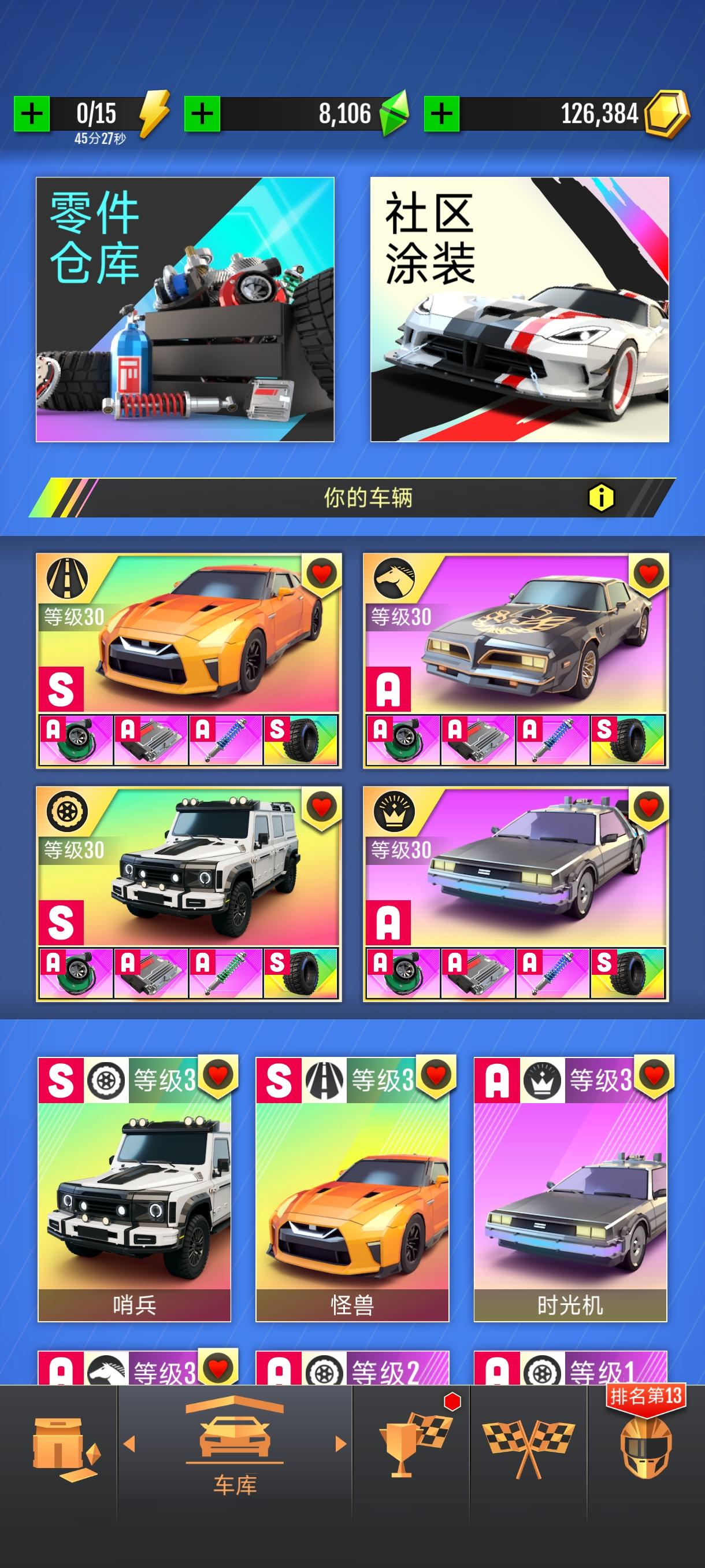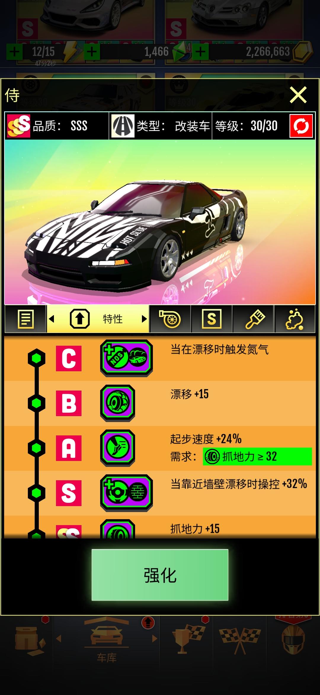 当靠近墙壁漂移时+32%侍(操控)S改装毒蝎(操控)S越野湖中剑(操控)S超跑慧星(起步速度)A改装神光(起步速度)B改装豆腐(起步速度)C改装每6秒最高时速+12%螳螂(最高时速)S改装野望(最高时速)S越野银箭(最高时速)S肌肉人马座(最高时速)S超跑夜镇(最高时速)B肌肉制冰房车(最高时速)C肌肉当在漂移时+24%星魅(操控)S改装量子(操控)S超跑火神(操
