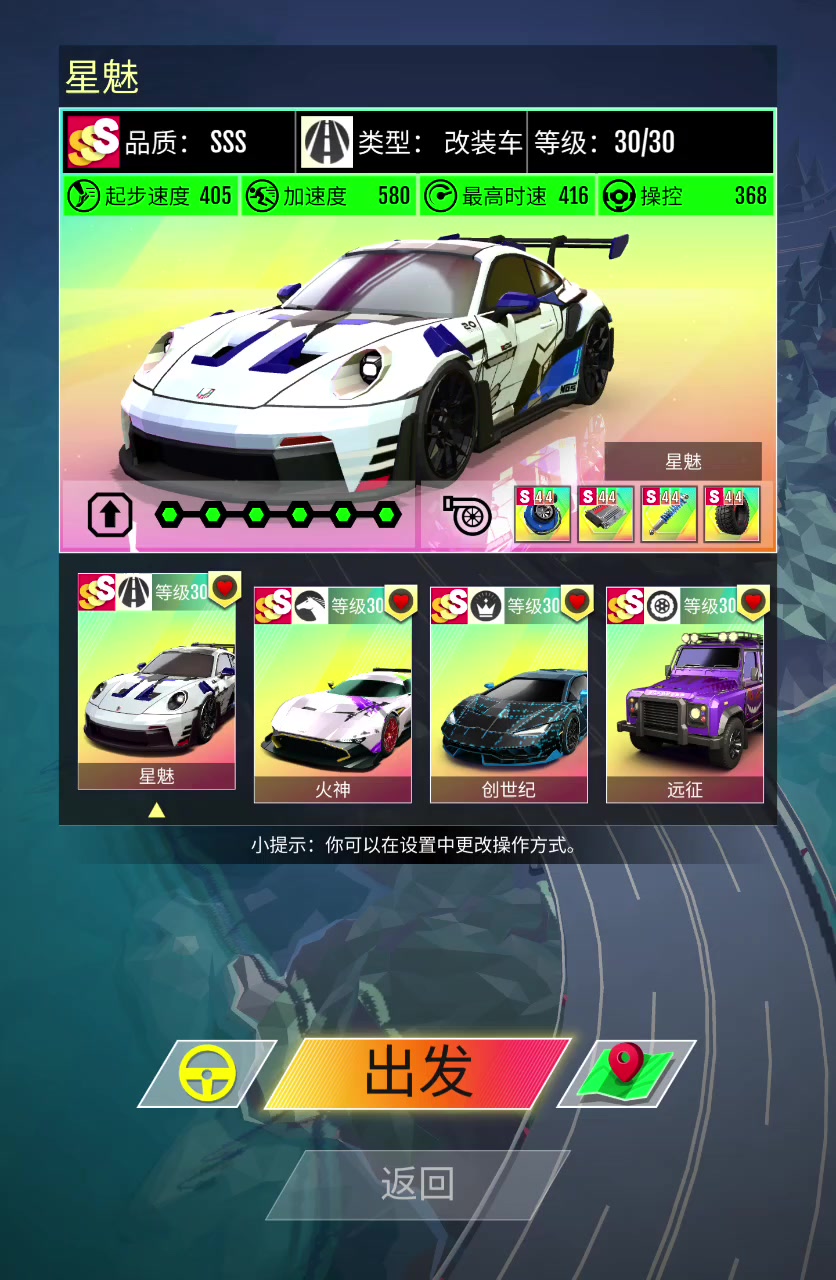 超维,弯道型跑车 S特性为无碰撞时操控提升,配合A特性加速度提升,在多弯路段能维持高速行驶。 同时跑车自身优秀的刹车性能,使超维在过弯同时,操控简单易上手; 超维无法通过弹墙技巧来取得急转优势,极度依赖走线过弯,因此频繁急转的路段处于劣势; 相对,超维拥有极高的基础最高时速,在弯道和直线复合路段时能取得更高的成绩 推荐地图:海岛,山脉,绿洲 次选地图:雪地,工厂,都市 零件搭配: 主要属性优先选择