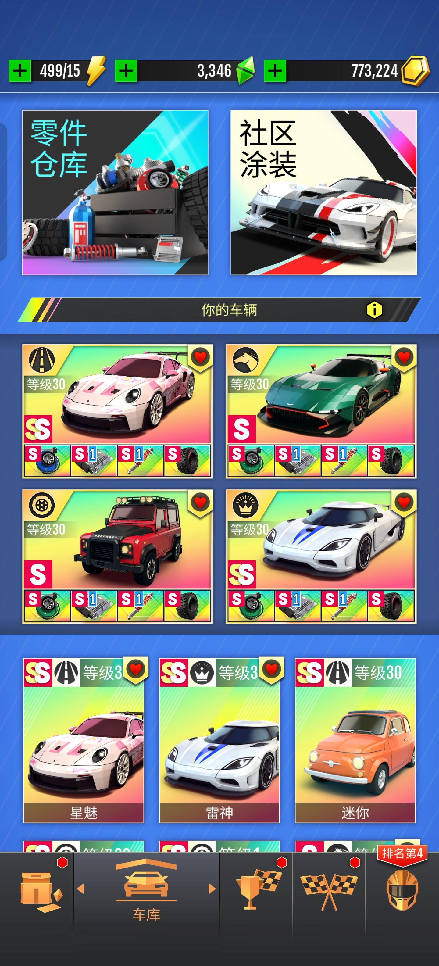 游戏很好玩,不管什么模式总能找到爽点,相见恨晚!抽卡运气不太好,车基本是保底出的,零件也很垃圾(难道是零氪的DUBUFF)上了32联赛后车辆和零件等级性能差距愈发大了,实在打不上去了,昨天就开了个小号,又有新的乐趣了