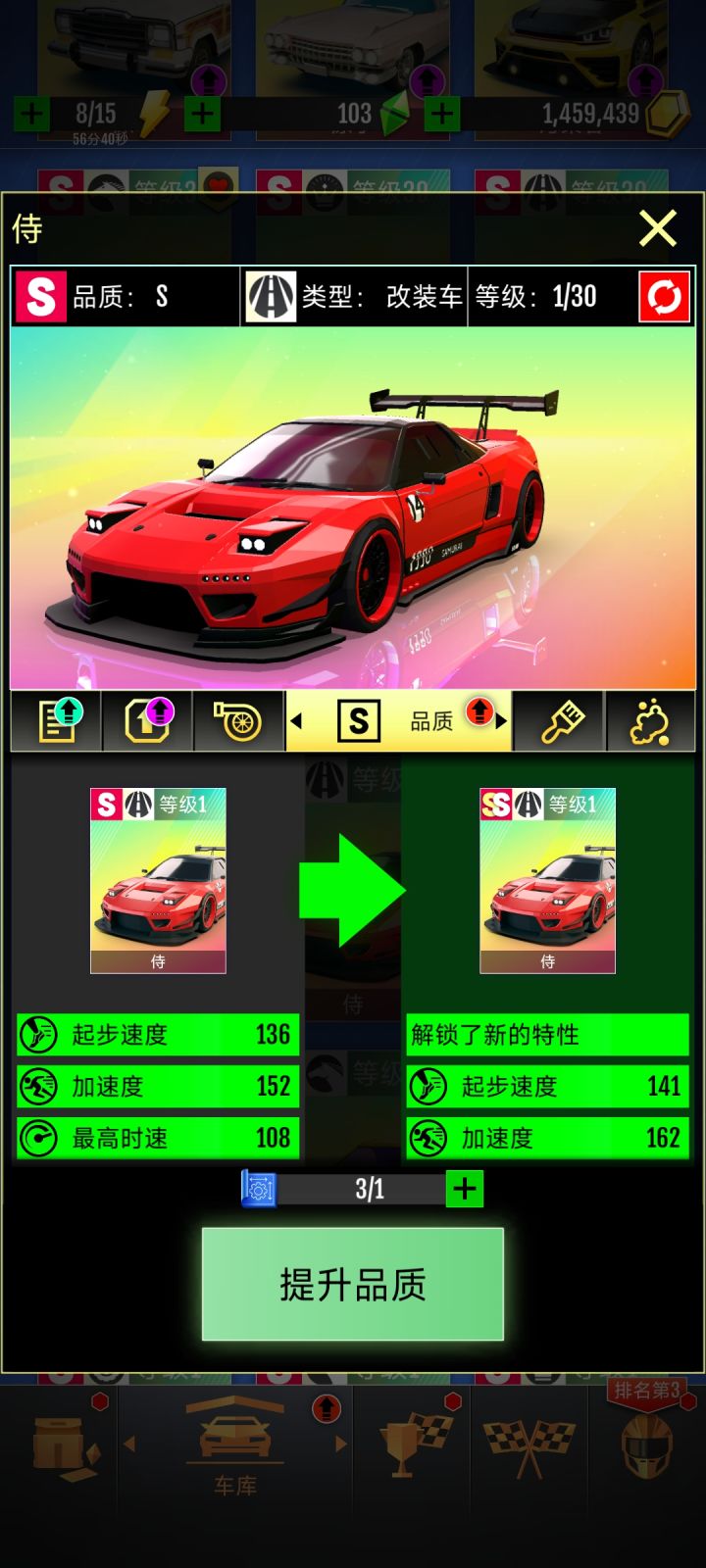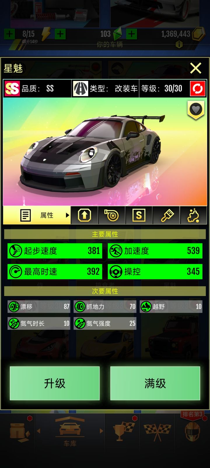 入坑《绝尘漂移》第157天,今天做了个决定:把攒了很久的资源全砸下去,给侍干到手。入坑第一辆限定车其实是星魅,刚入坑啥都不懂,看平台攻略说星魅适合新手,就紧赶着返厂结束就抽了个2S。结果真的顺手,也真的帅——那段时间除了香港这个阴间图和雪地,其他图我基本都是星魅一路跑过来的,总的来说就是萌新亲爹车。它陪我凹图、陪我从萌新慢慢找到手感,很多对这游戏的记忆,其实就是星魅的车衣和它的漂移声。换侍不是