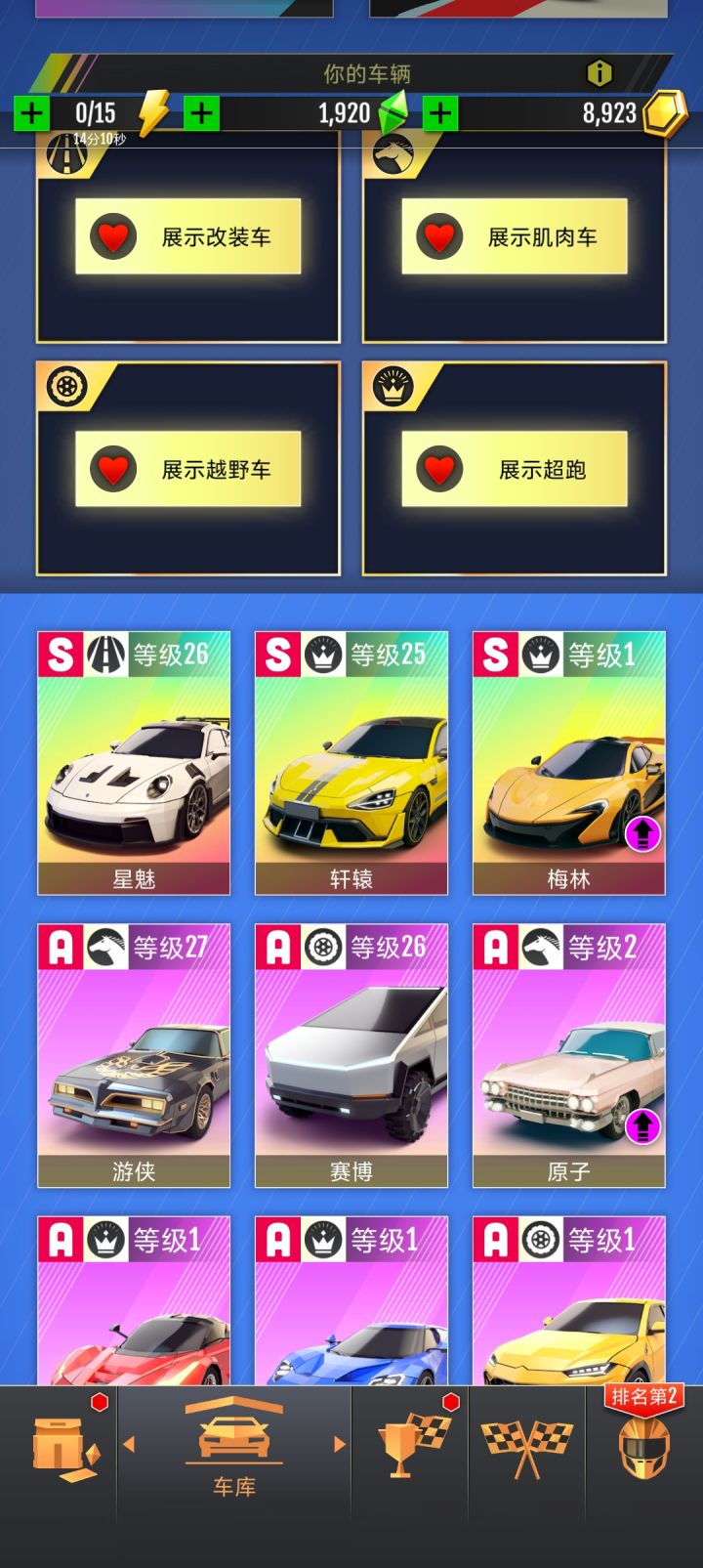 游玩历43天(约七周) 目前是33联赛初限定车已经有星魅、蛮牛、哨兵星魅对我来说已经是现阶段完全够用的改装车了哨兵也基本上通吃所有越野图了蛮牛跑跑沙滩估计也还行发这个帖的目的就是想问问各位高手,我接下来肌肉车跑车需补什么?以及补的优先级