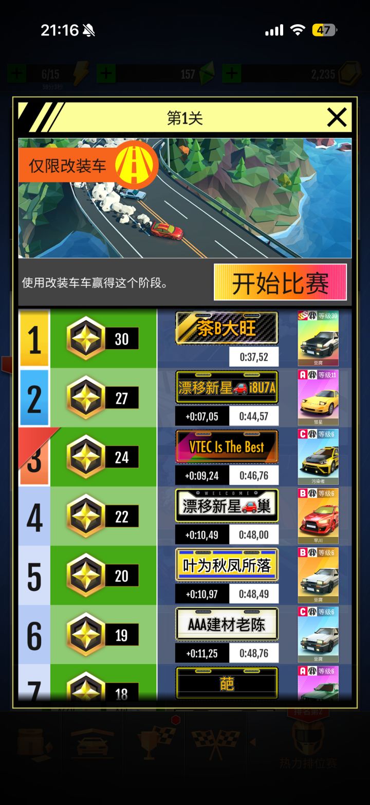 我感觉我和他们的区别就是他们有一辆好车…其实这个游戏也挺考验技术的……