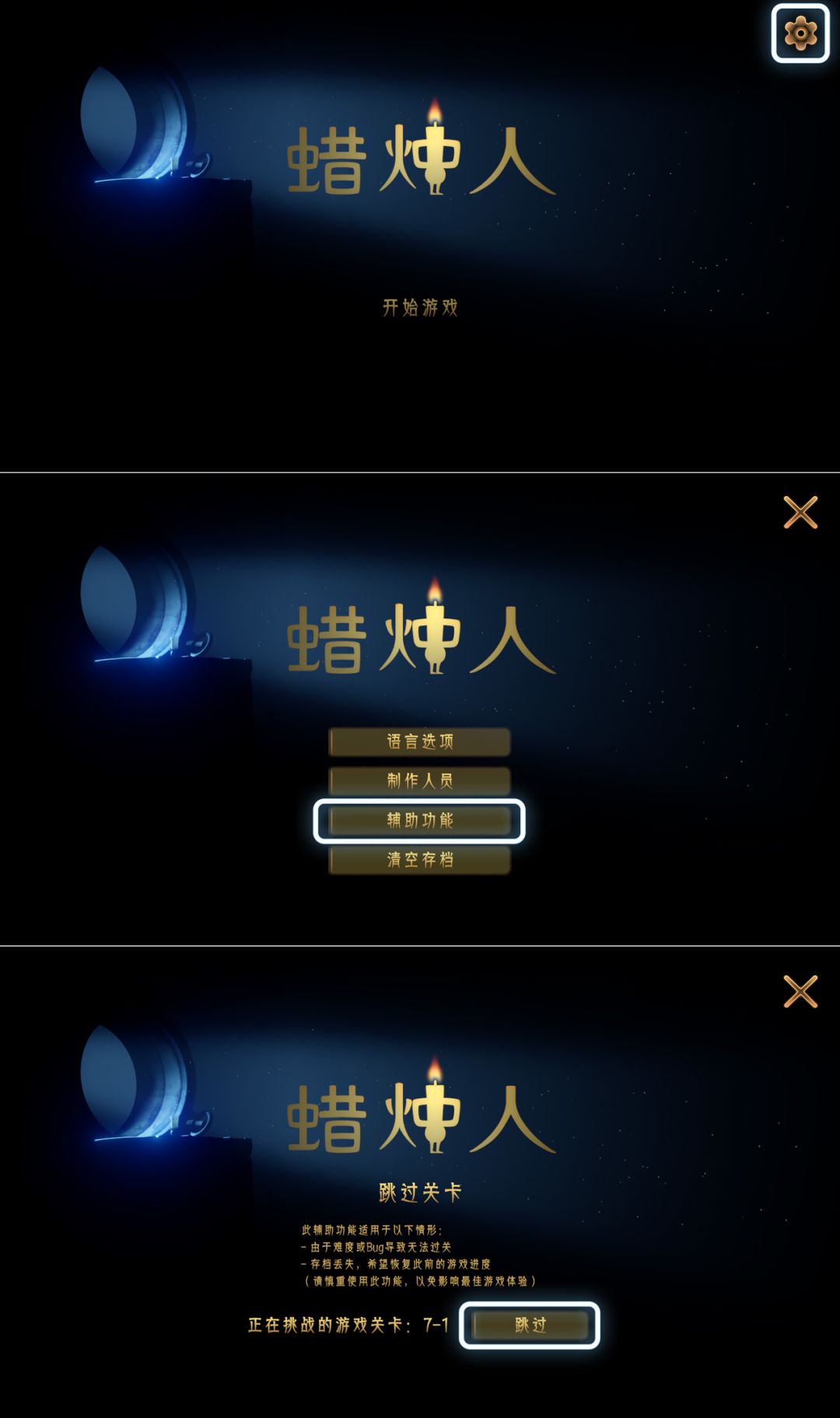 《蜡烛人》“跳关”辅助功能简介