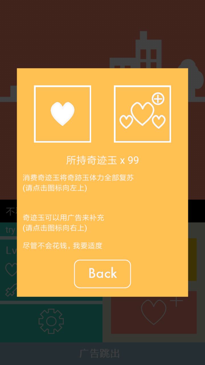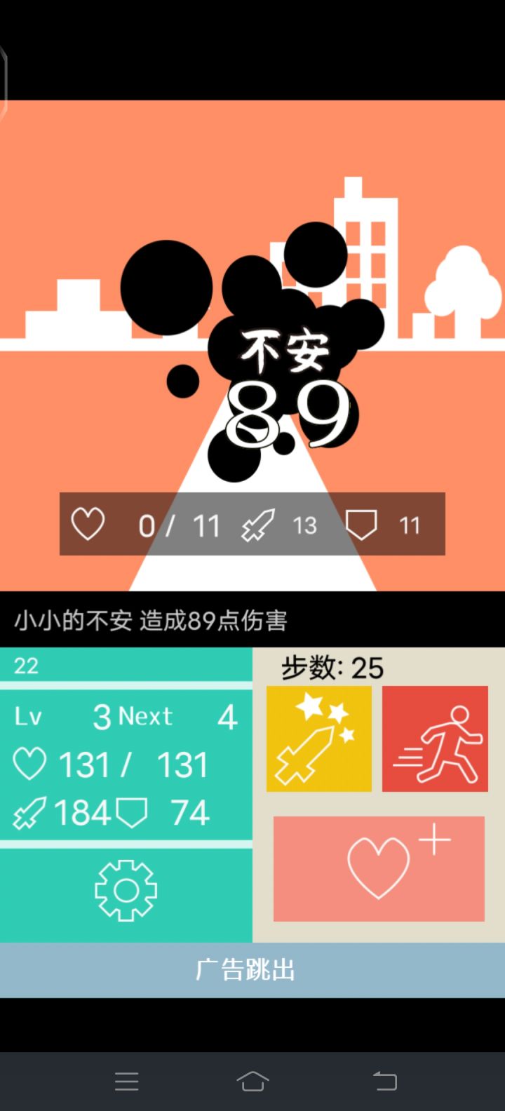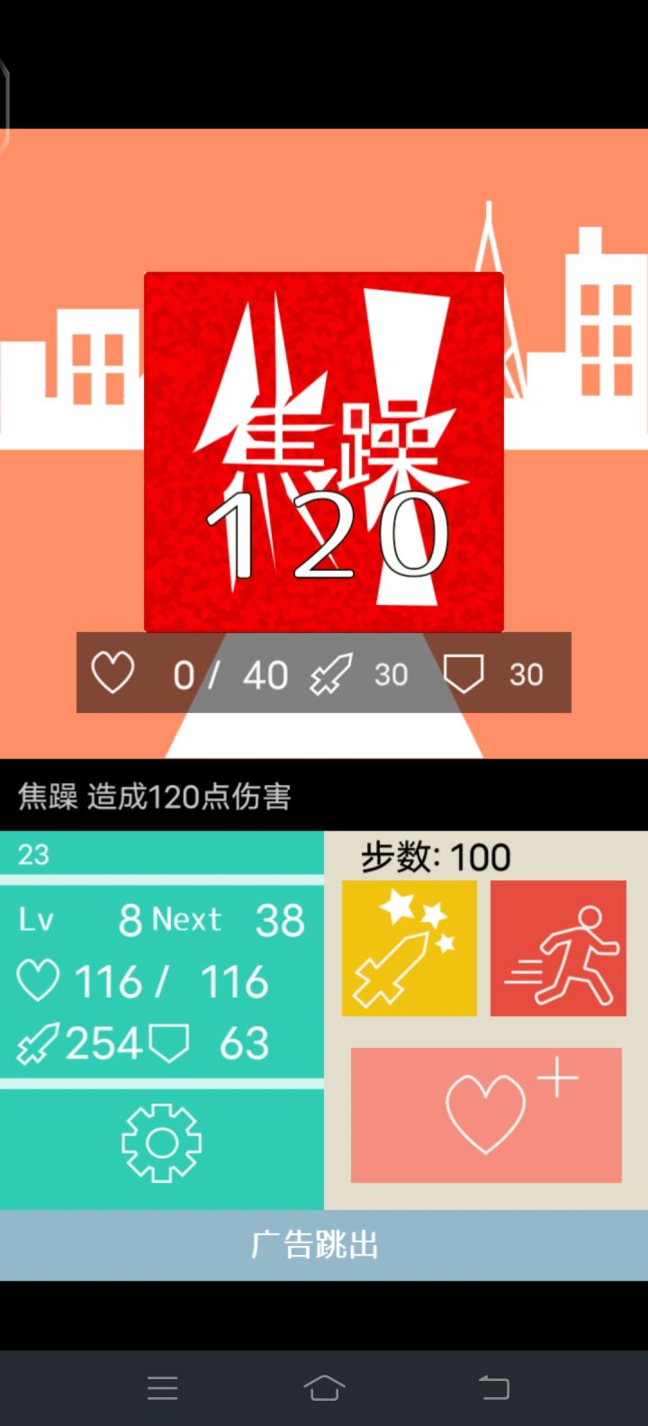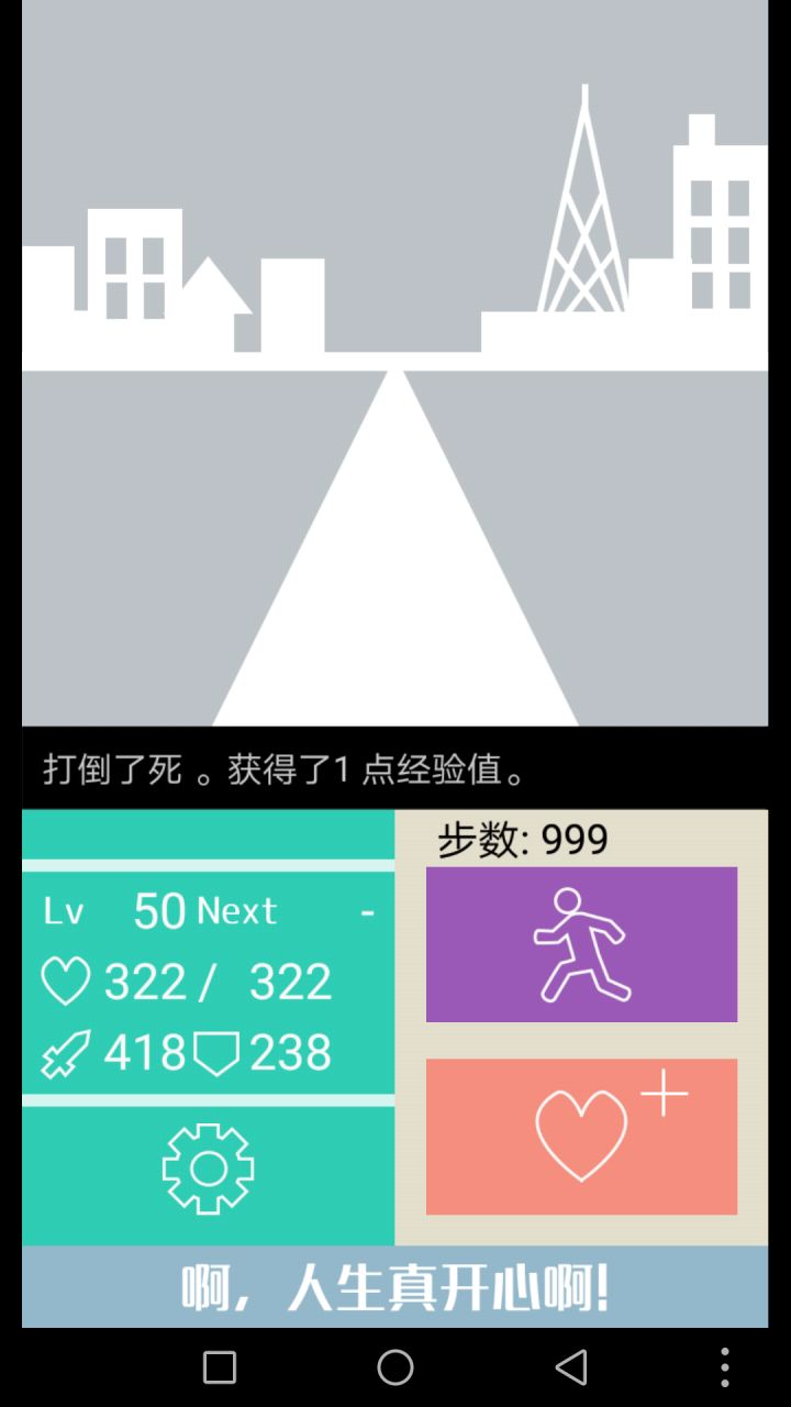 挺好玩的,已通。游戏方面选择了属性继承的方法,使每次游戏结束后不会有白忙一场的感觉,属性垫出来后是真心爽啊,有如割草一般(。・`ω´・),很喜欢。弊端是这也会让以后越来越容易,显得单调,希望可以再增加其他好玩的随机剧情。有几点觉得可以改进的地方,比如700-900步都是关于失去伴侣的感觉黑暗得太久了,500-700有伴侣buff,虽然很爽,但形式也单一,或者也可以加个背包?不过那样也会使游戏不